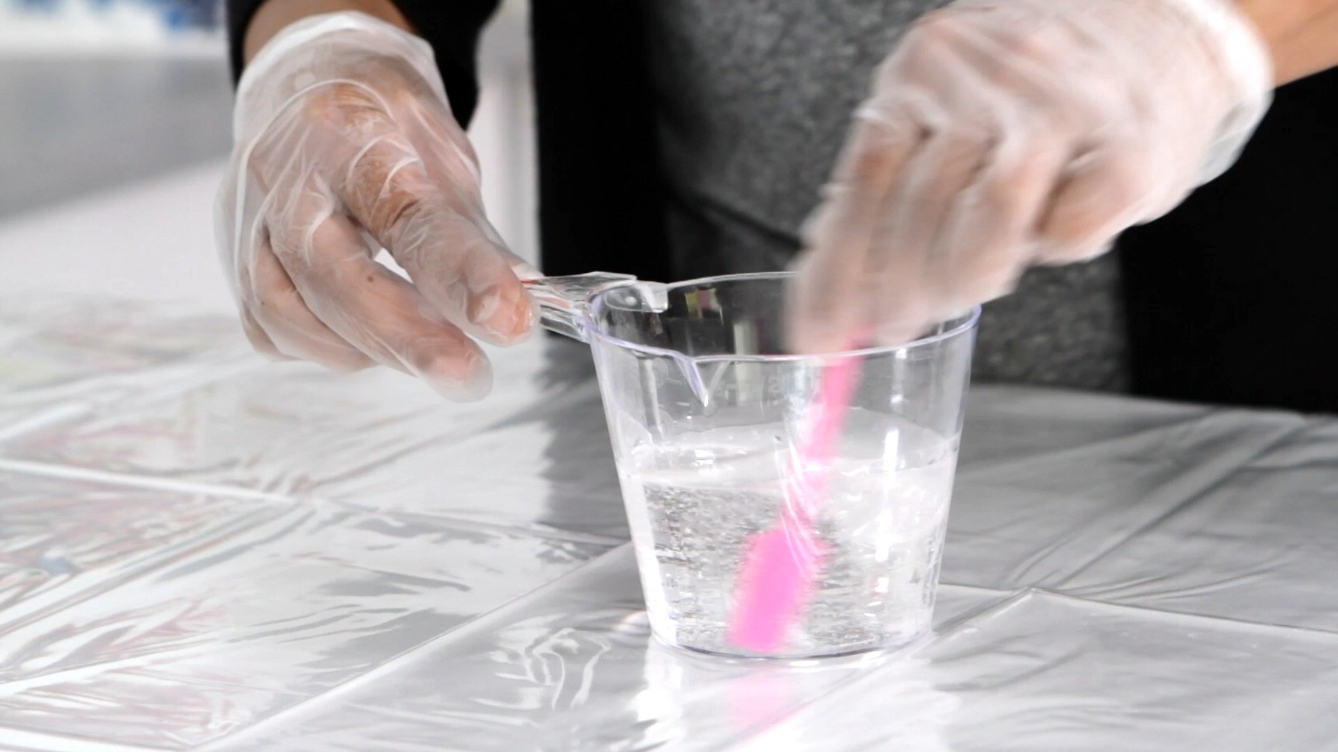 پس از اندازه گیری رزین و هاردنر بصورت دقیق مهمترین قسمت همزدن و اختلاط این دو مایع است.
